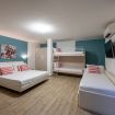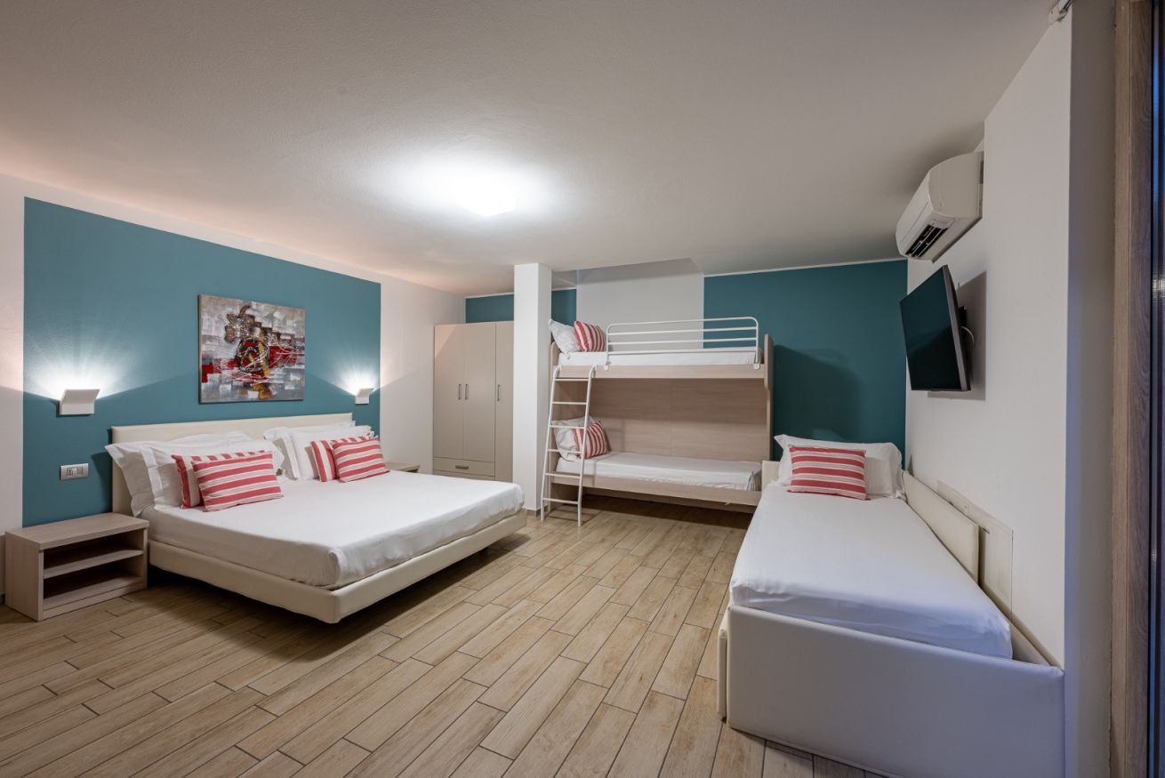 - Una camera matrimoniale con TV, un letto matrimoniale, un letto singolo, un letto singolo a scomparsa e un letto a castello*;