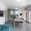 - Open space con una spaziosa cucina (dotata di frigorifero, freezer, piano cottura a induzione, forno a microonde, forno, tostapane, lavastoviglie, macchinetta per caffè Nespresso, teiera e altre attrezzature da cucina) e soggiorno con un grande tavolo allungabile, smart TV con decoder SKY e servizio di Virtual Concierge, due comodi divani;