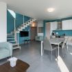 - Open space con una spaziosa cucina con frigorifero, freezer, piano cottura a induzione, forno a microonde, forno, tostapane, lavastoviglie, macchinetta per caffè e cappuccino, teiera e altre attrezzature da cucina. Un grande tavolo allungabile, TV satellitare con decoder SKY e un comodo divano che può essere usato come divano letto matrimoniale;